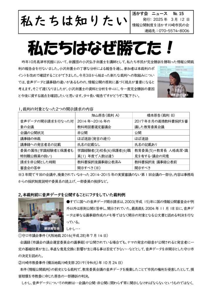 裁判ニュース「私たちはなぜ勝てたか」