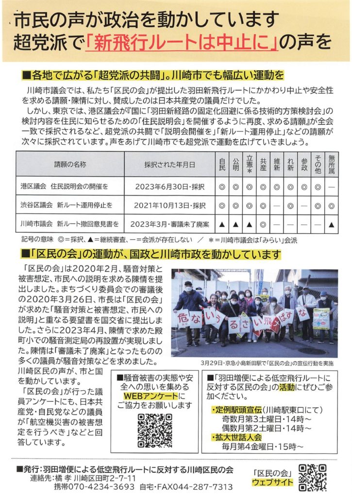 羽田増便による低空飛行ルートに反対する川崎区民の会