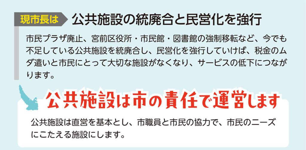 私は、地域の一人ひとりの声に耳を傾け、皆さんと一緒に「市民の暮らしに寄りそう政治」に変えたいと思います。 |